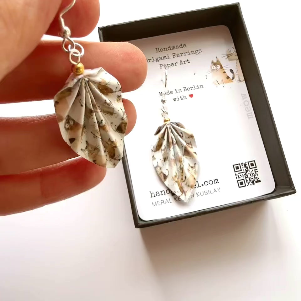 Cat Origami Earrings Handmade Meow – Unique Paper Art